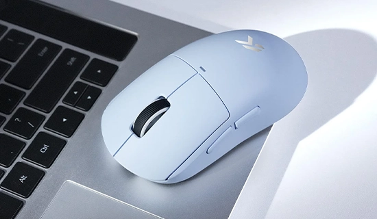 Souris Gaming sans-fil ultra-légère Bleu - Forme symétrique - Capteur Pixart PAW3395 - 26000 DPI - Switchs Omron